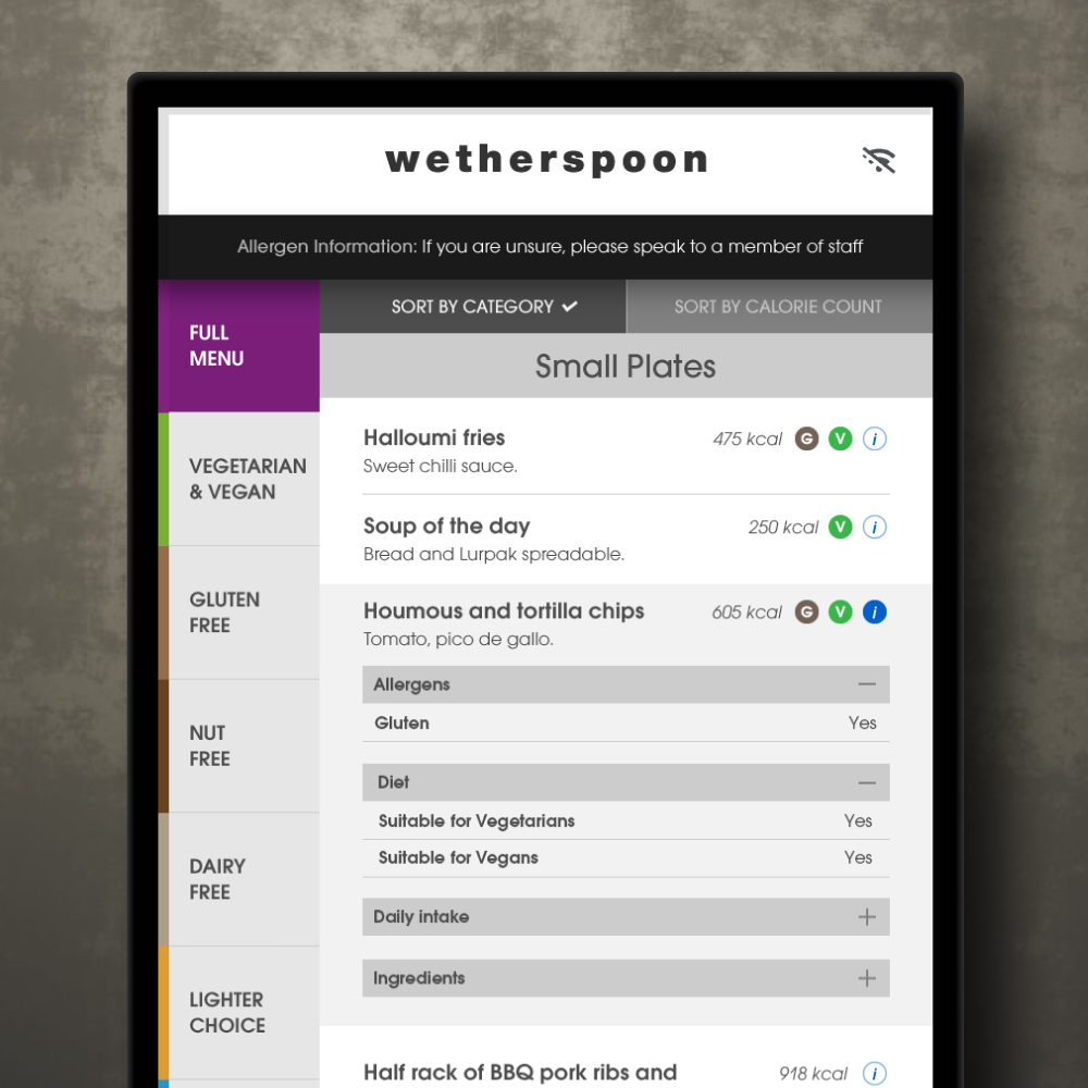 Wetherspoon Allergen Kiosk