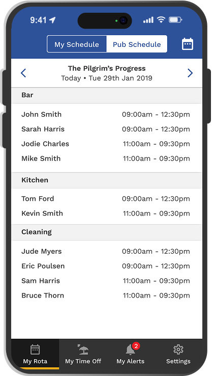 Managers can view the full pub rota within the same experience, reducing the need to switch systems.