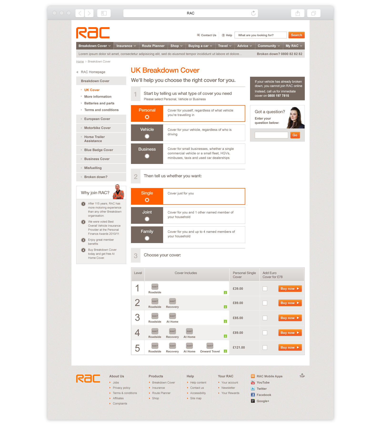 The site needed to support a wide range of services including breakdown cover, insurance and member benefits, while remaining clear, trustworthy and usable for a broad audience.