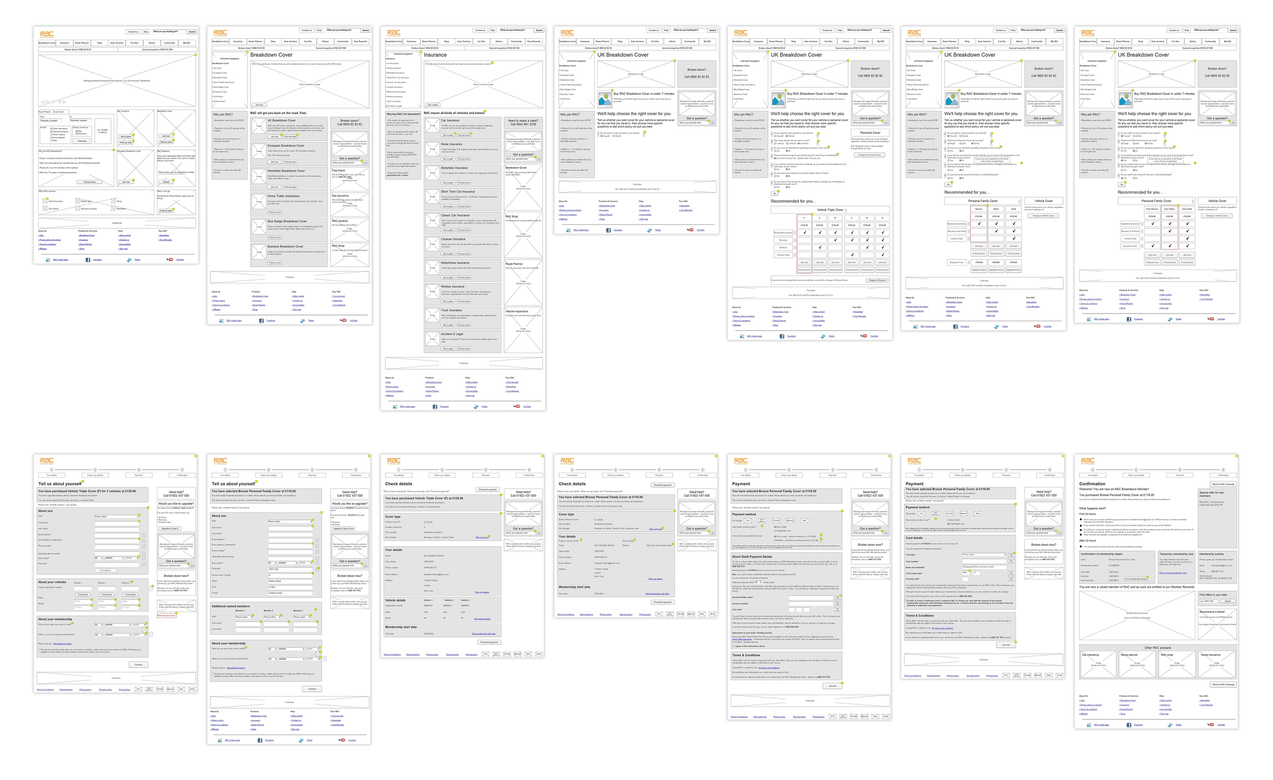 Research was carried out with the RAC data team, using customer data to define key personas such as everyday motorists, commuters, families and long standing members. This was supported by analytics review and common UX activities at the time, including content audits and journey mapping.
