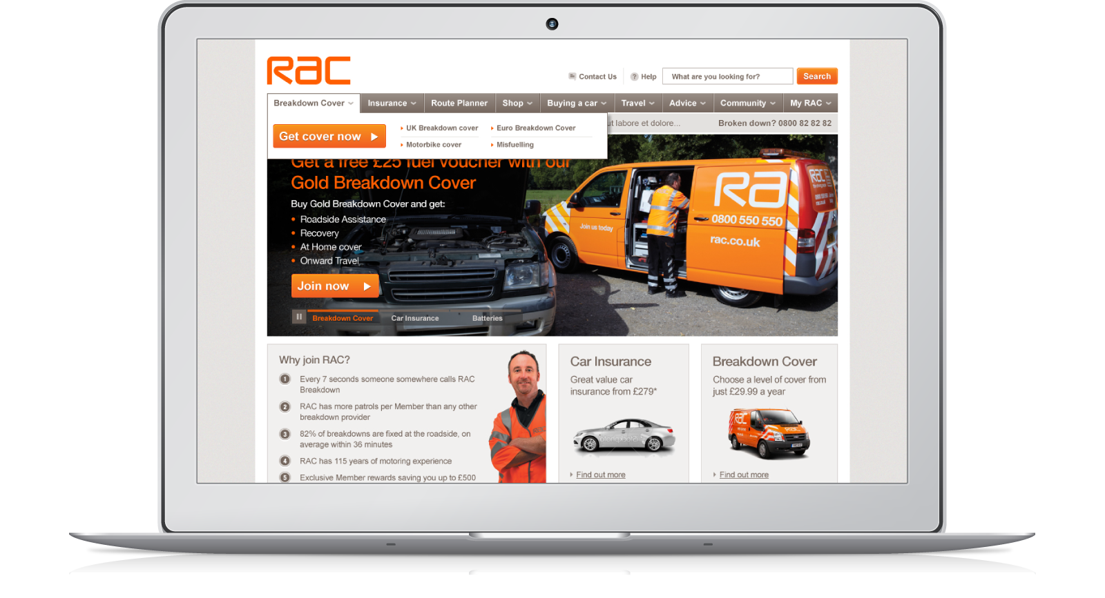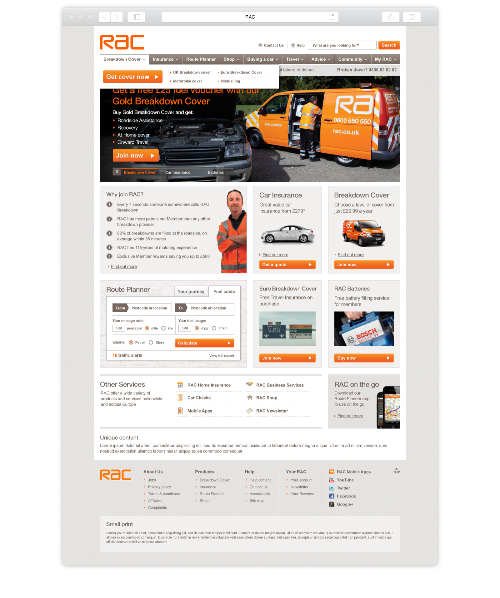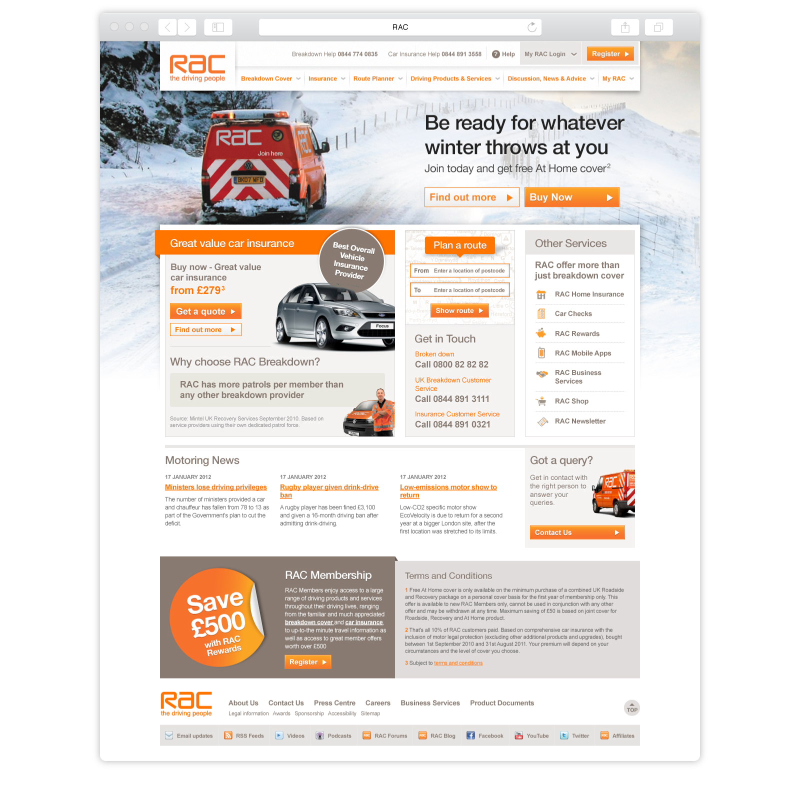 This project involved the redesign of the RAC website, from early concept work through to the design of all core page templates.