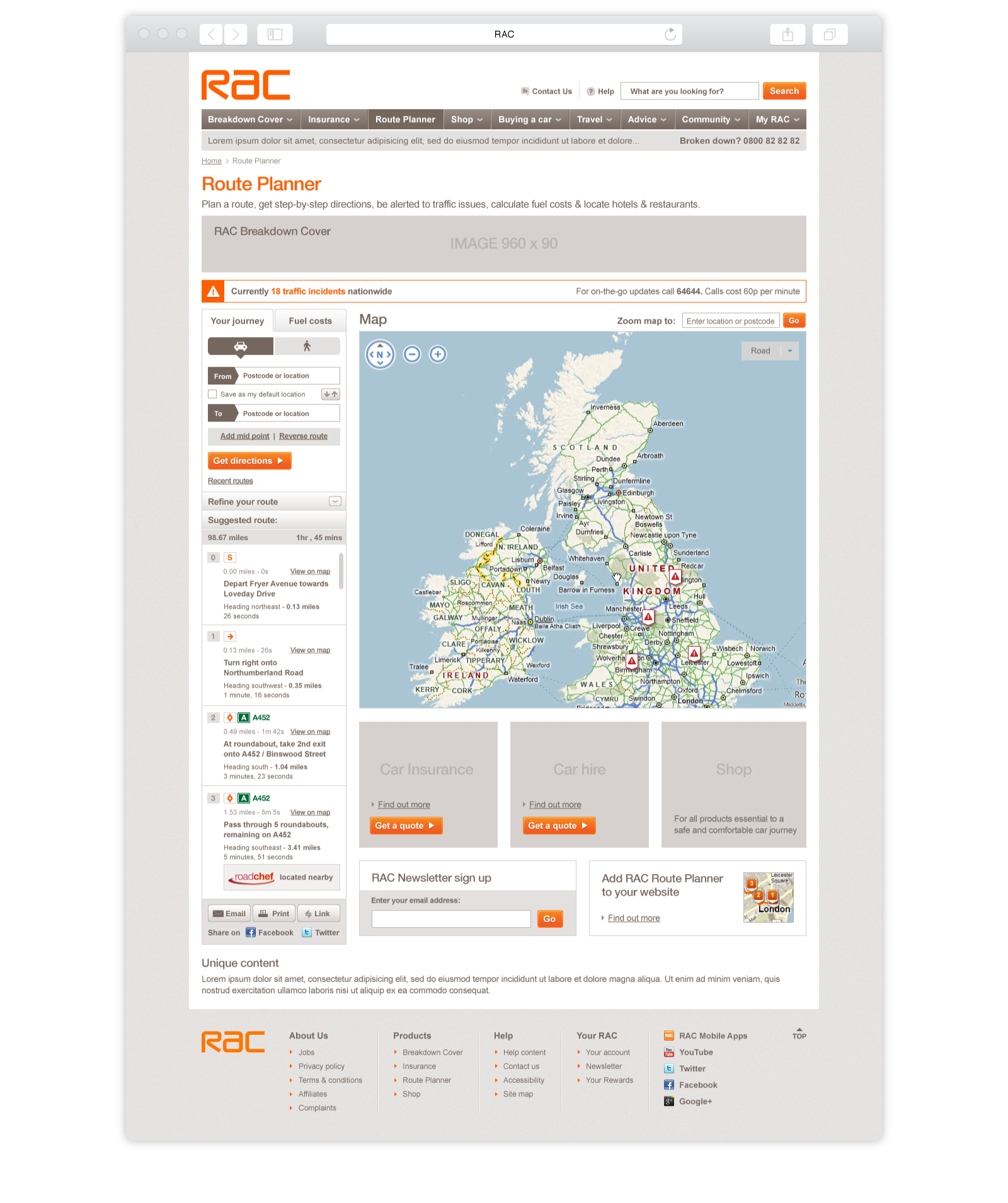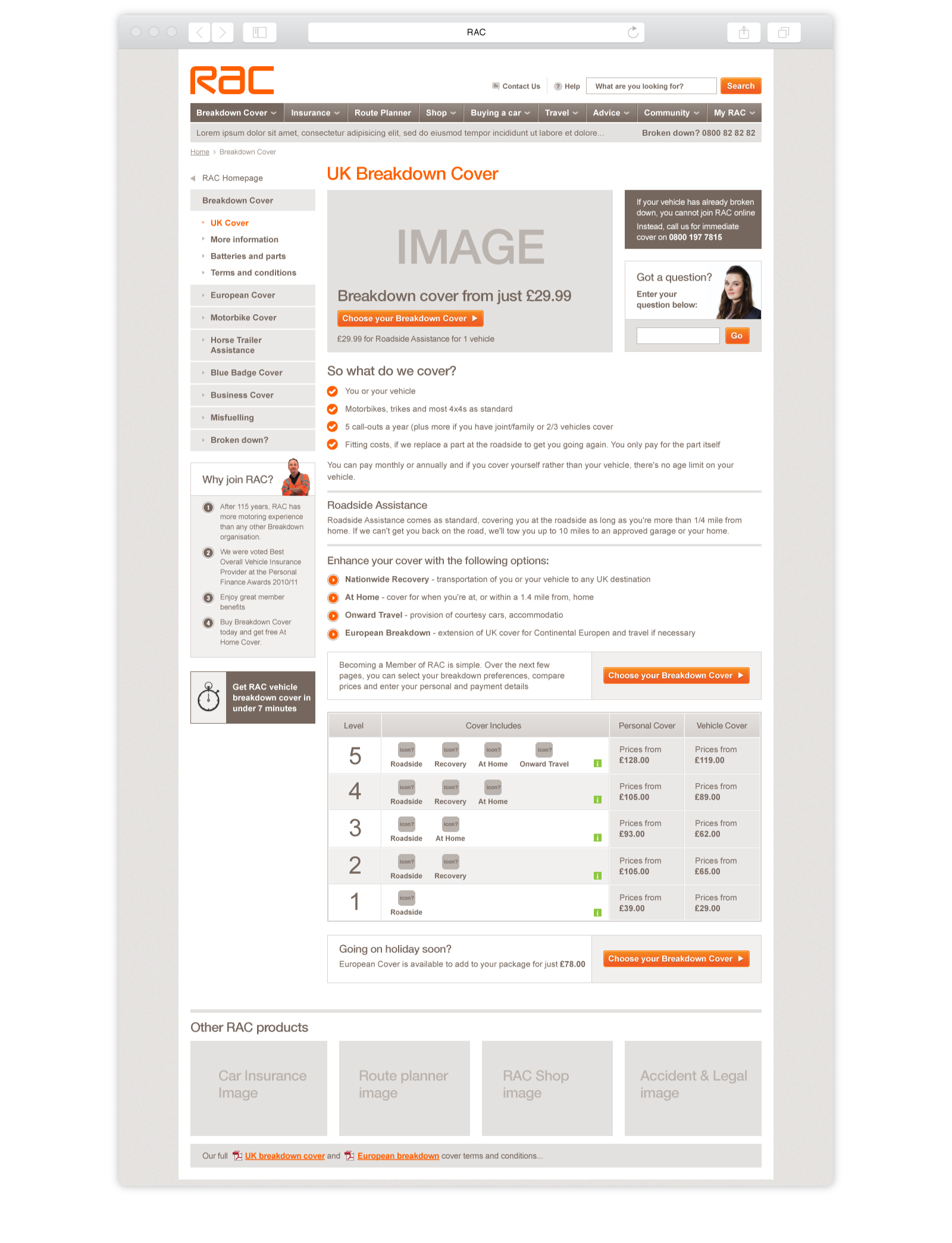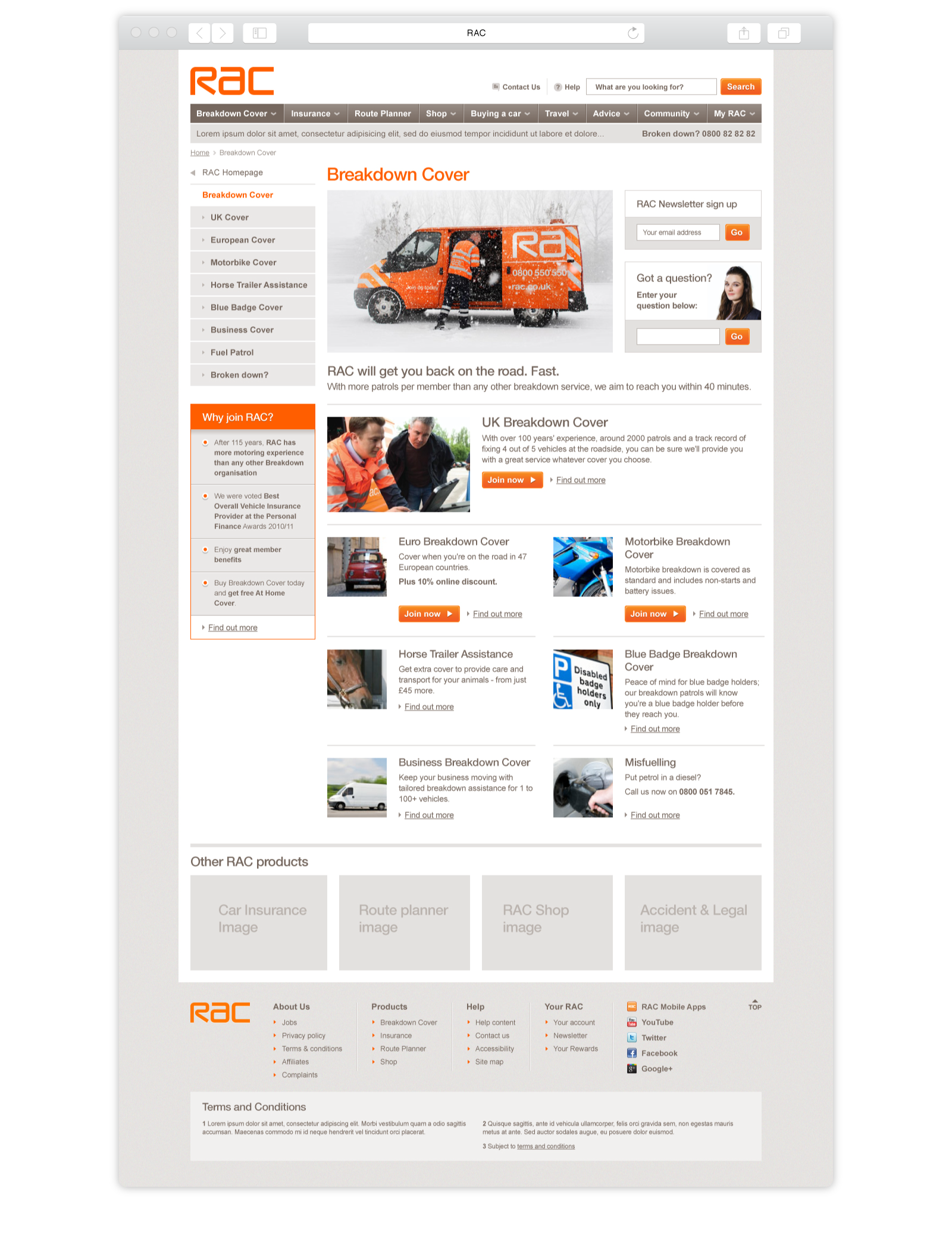 This project involved the redesign of the RAC website, from early concept work through to the design of all core page templates.