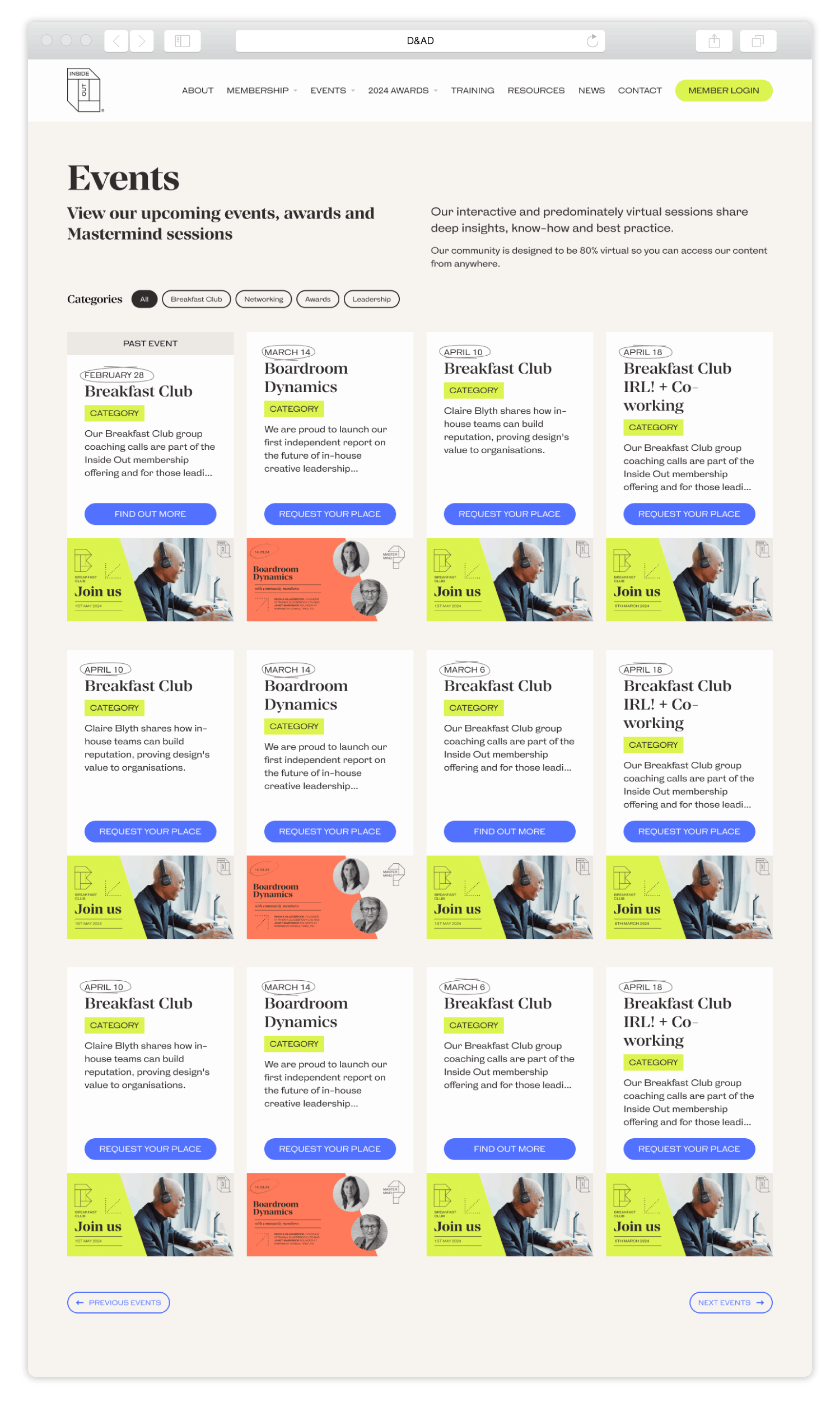 The overall structure of the site largely remained the same, but the interface needed to be redesigned to reflect updated branding assets and a new visual direction. The focus was on applying the new look and feel consistently, while ensuring the site felt clear, usable, and appropriate for a senior creative audience.