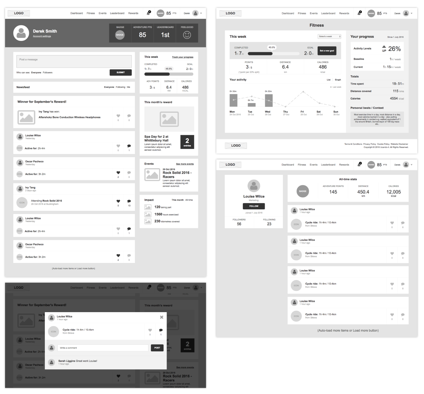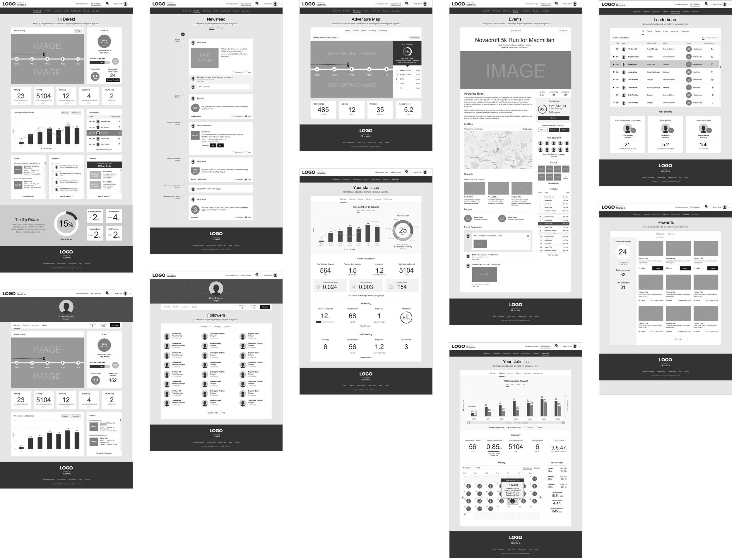 Full UI design for the employee experience, covering onboarding, activity tracking, goals, events and rewards