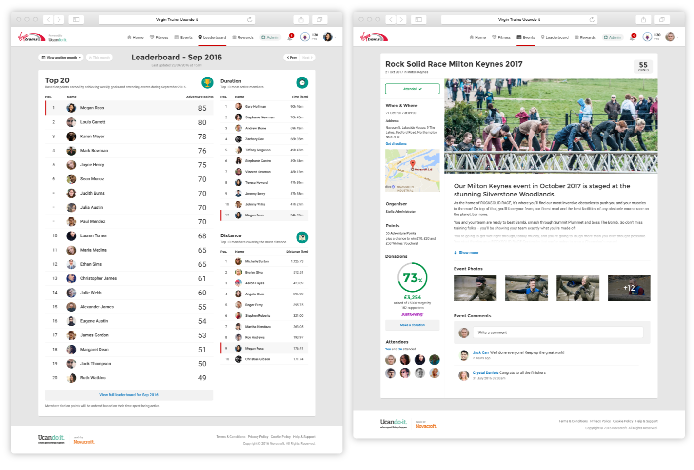 The platform helped Novacroft and pilot partner Virgin Trains run wellbeing initiatives that motivate staff to stay active while giving employers better visibility of engagement and participation.