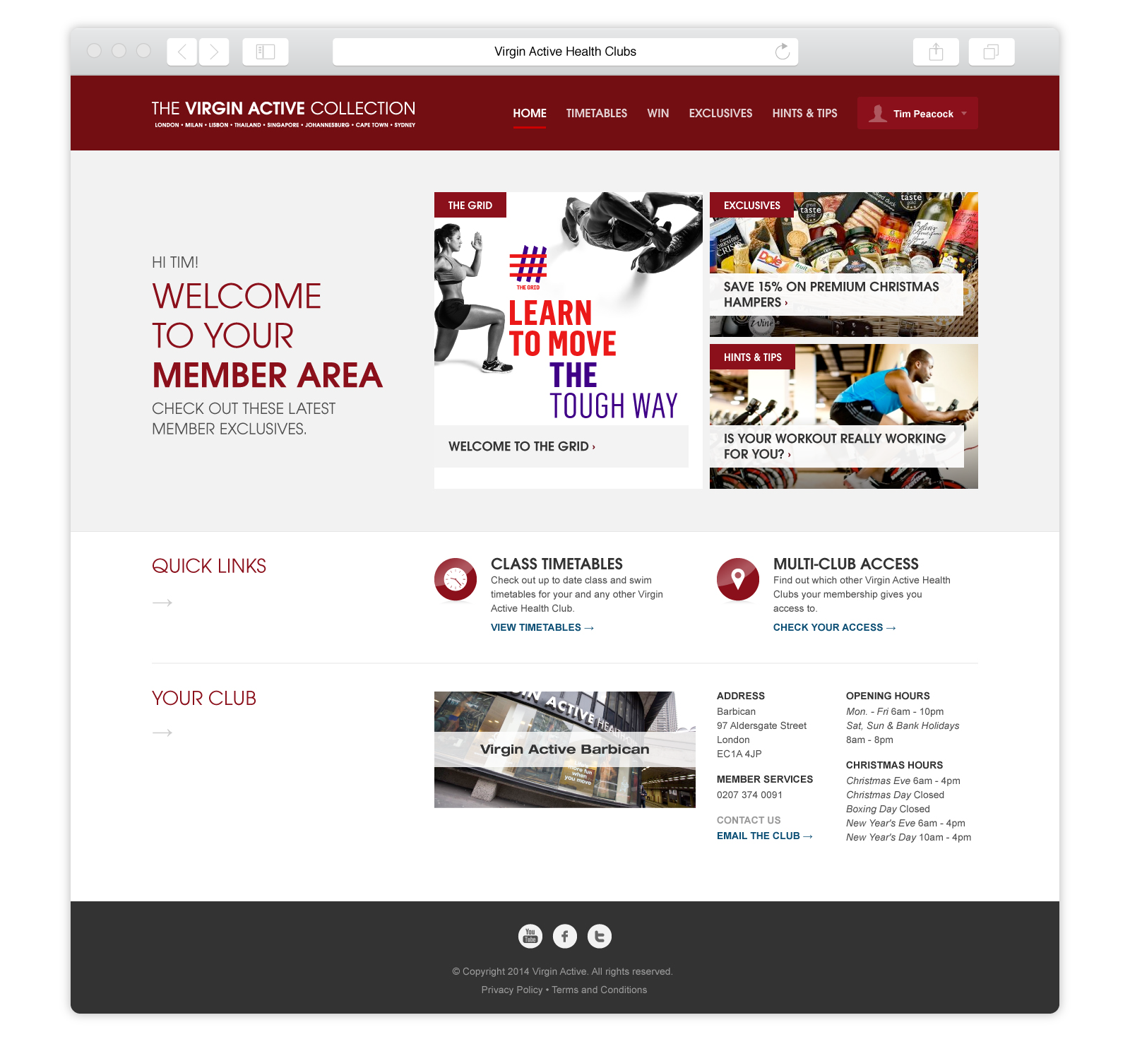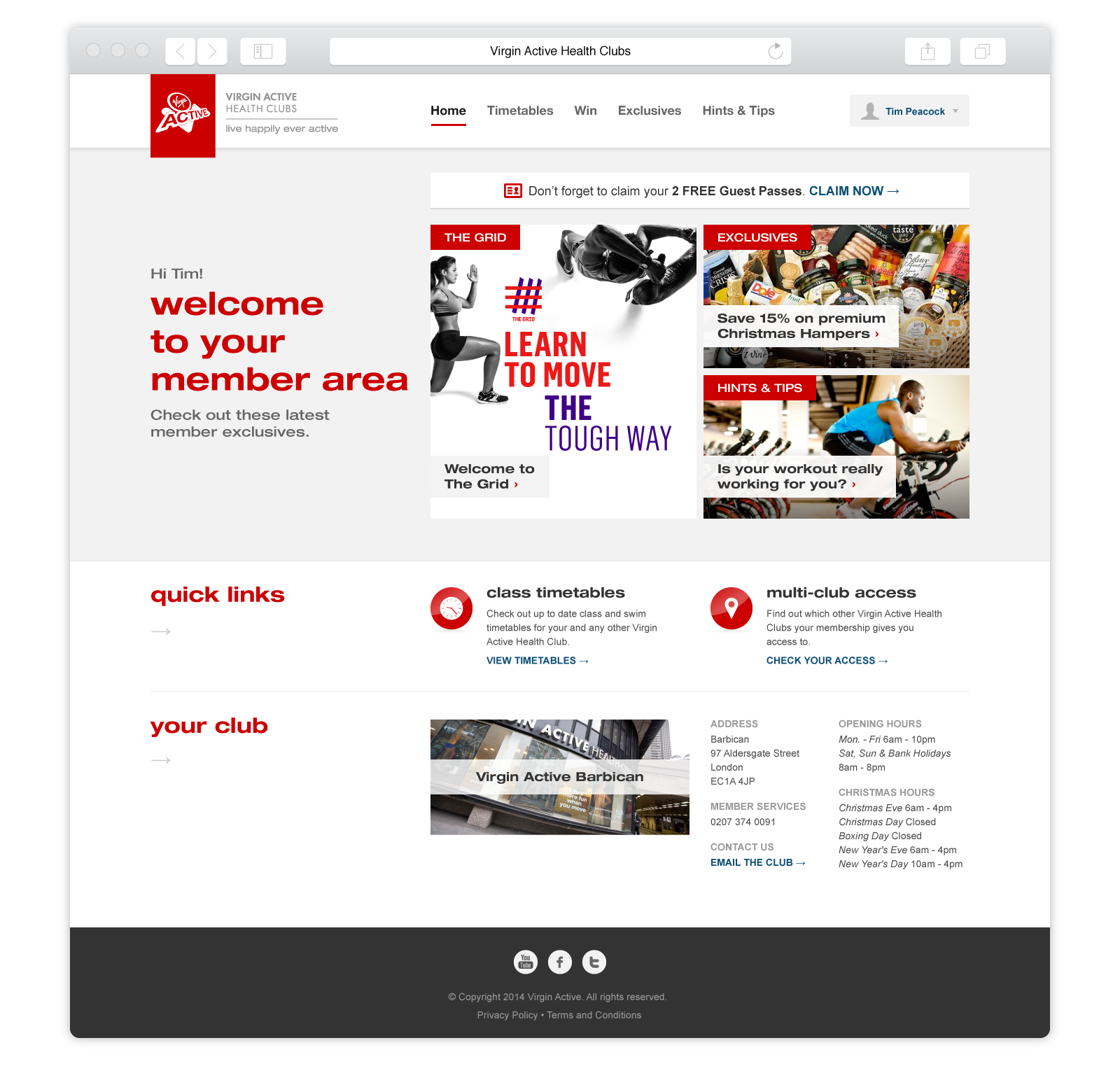The Virgin Active Members’ Portal was a private site used by members to manage everyday tasks such as booking classes, checking timetables, updating membership details and accessing offers.