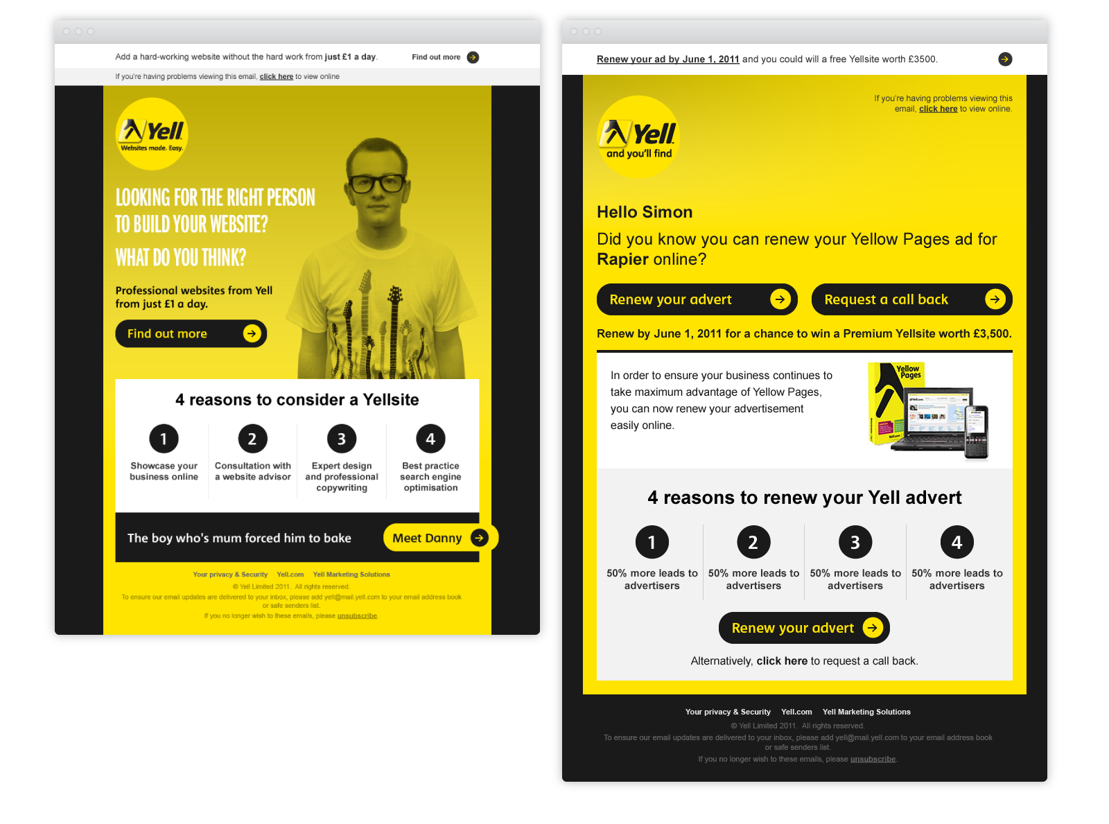 I worked on the Yell account as lead designer, supporting a range of digital marketing activity across microsites, email campaigns and display banners.
